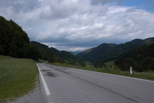 Zdjęć mało ponieważ pogoda nie dopisywała było pochmurnie i zimno miedzy 13-18 stopni. Do 60 kilometra udało się uniknąć deszczu niestety chwile później zaczyna padać, przeczekujemy w lesie i jedziemy dalej niestety cały czas co chwile cos kropi ale na szczęście jazda jest możliwa. W miedzy czasie zaliczamy pierwsza austriacka przełącz Geiseben 594m n.p.m. od czegos trzeba zaczać :)Cały dzień takie widoki i taka pogoda